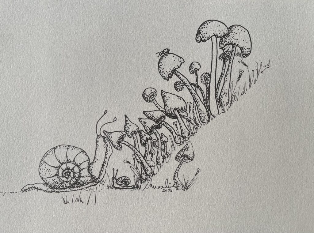 I have a growing passion for fungi, for their shapes, beauty and strangeness and for their seemingly infinite possibilities for medicine, textiles and environmental remediation. They are, quite simply, fung-tastic! They have so much to teach us, we have so much to learn. Drawing fungi is my way of listening.